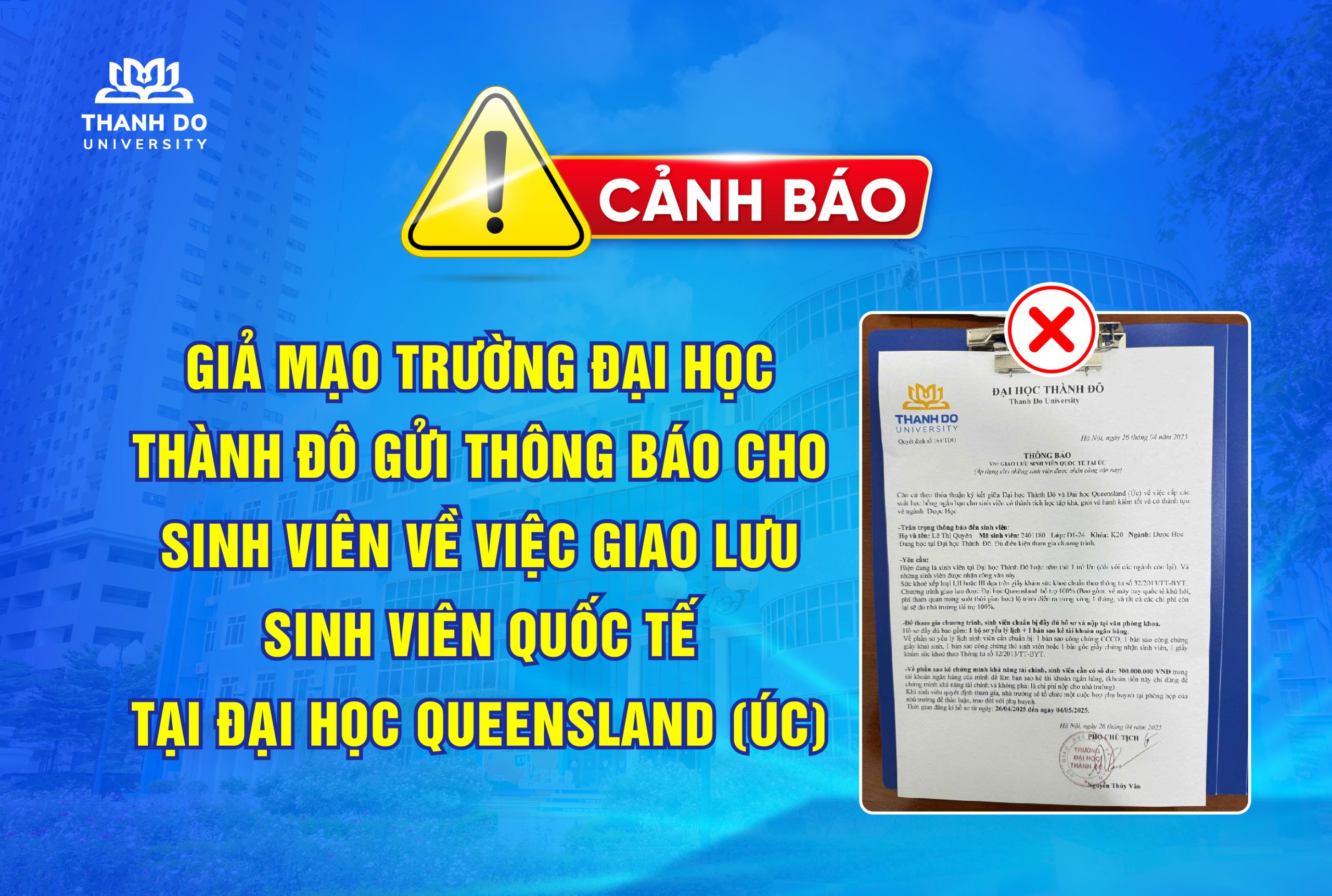 Trường Đại học Thành Đô trân trọng thông báo: hiện nay đã xuất hiện văn bản mang danh nghĩa Trường Đại học Thành Đô về việc thông báo giao lưu sinh viên quốc tế tại Úc. Văn bản này sử dụng con dấu, định dạng và chữ ký giả mạo của nhà trường, gây hiểu nhầm cho sinh viên và phụ huynh.