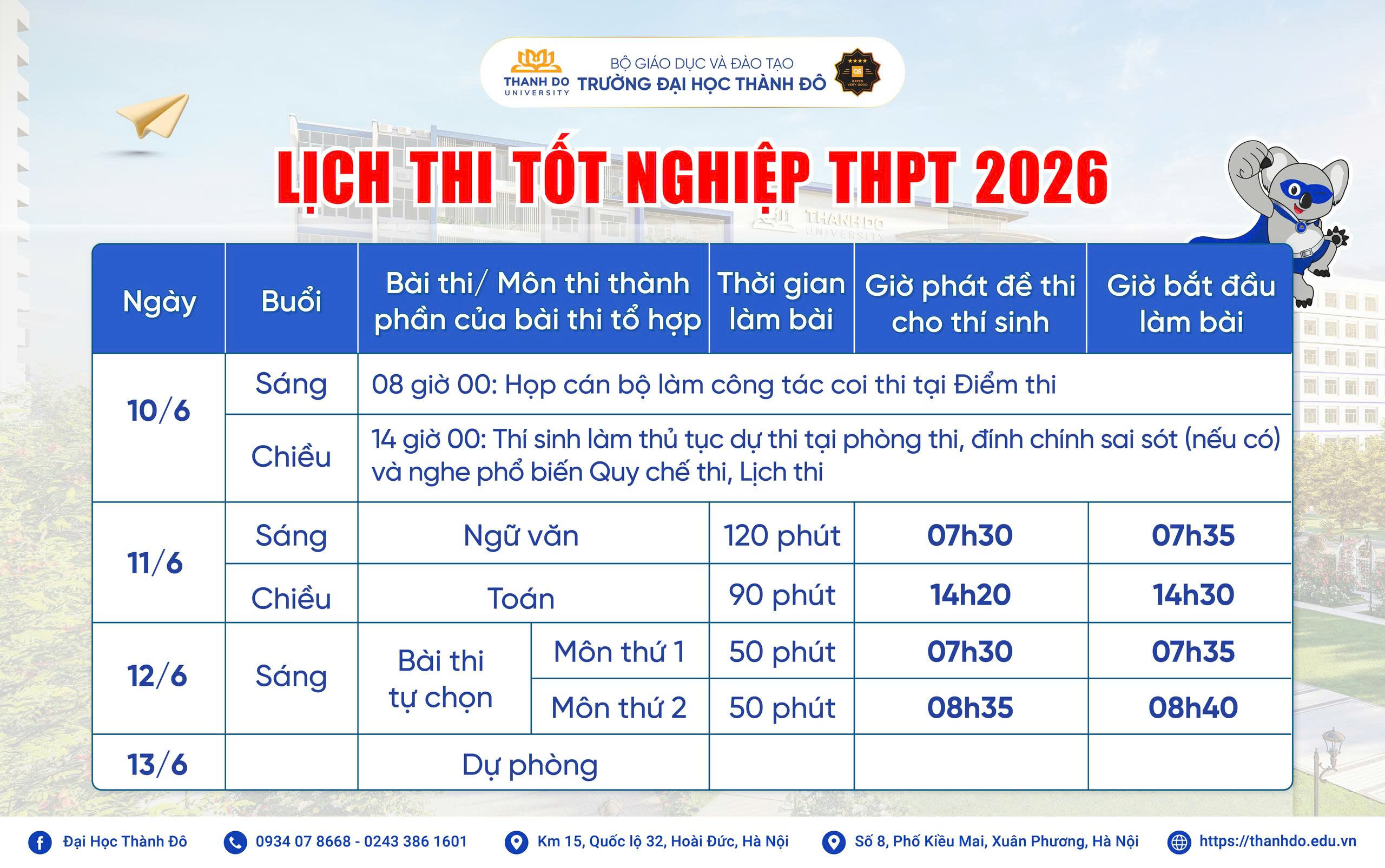 Địa chỉ: Km15, Quốc lộ 32, Hoài Đức, Hà Nội Hotline: 0934 07 8668 – 0243 386 1601 Website: https://thanhdo.edu.vn/ |