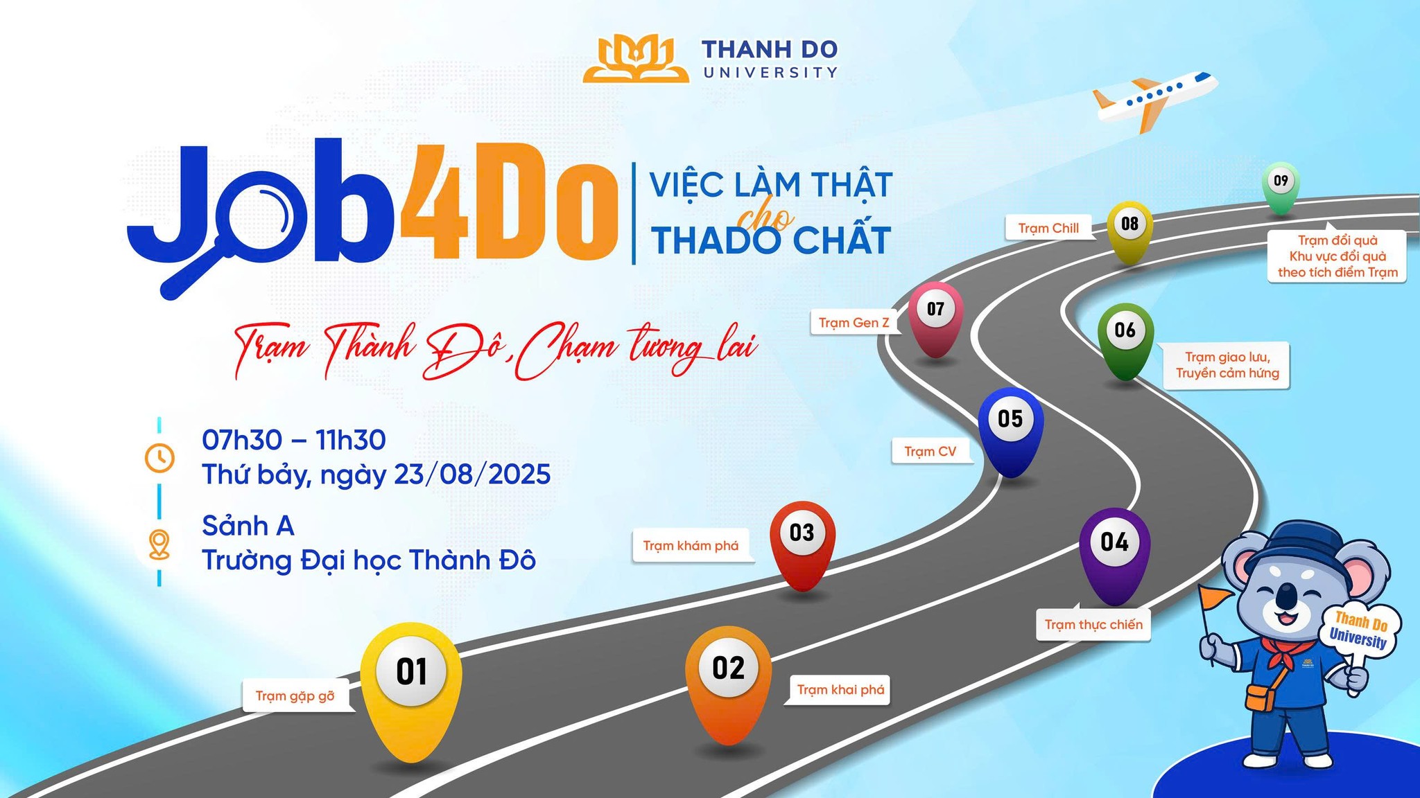 Job4Do 2025 không chỉ là nơi “chạm nghề” mà còn là nơi bạn học cách chủ động thiết kế tương lai của chính mình. Ngày hội việc làm không chỉ là nơi sinh viên tìm kiếm công việc, mà còn là dịp để thể hiện bản thân, kết nối với doanh nghiệp uy tín và định hình tương lai ngay từ khi còn ngồi trên giảng đường. Hãy chủ động nắm bắt cơ hội, chuẩn bị thật tốt và sẵn sàng cho những buổi phỏng vấn trực tiếp với nhà tuyển dụng. Cơ hội không đến nhiều lần – hãy hẹn lịch tham gia Ngày hội việc làm 2025 để là người tạo ra lợi thế cho chính mình nhé Thadoers!