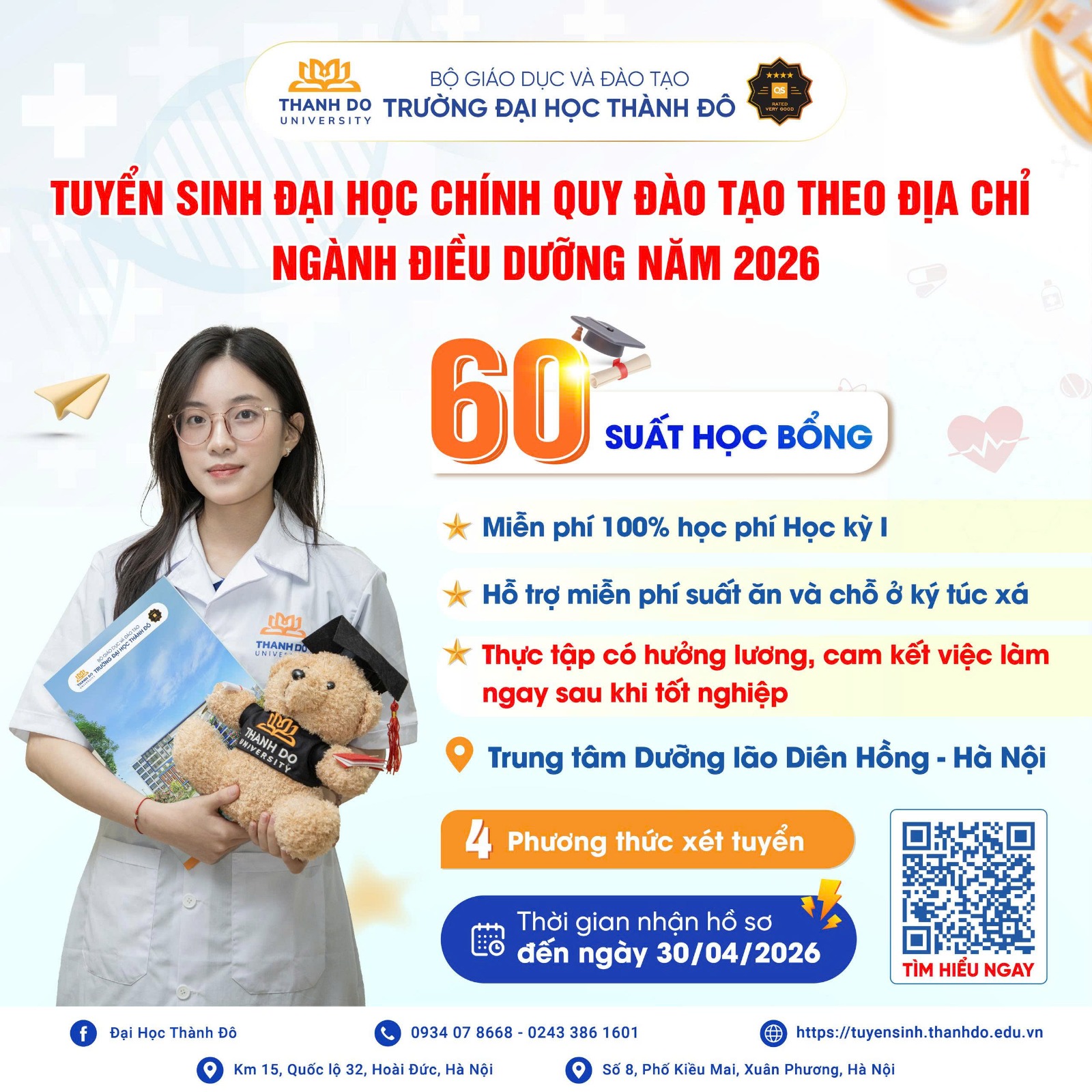 Điểm mới trong chương trình tuyển sinh 2026, tiêu biểu là chương trình “Đào tạo theo địa chỉ ngành Điều dưỡng” trên cơ sở hợp tác chiến lược giữa nhà trường và Trung tâm dưỡng lão Diên Hồng – Hà Nội, mô hình học tập kết hợp: 3 ngày làm việc tại doanh nghiệp, 2 ngày học tập tại Trường, giúp sinh viên sớm tiếp cận môi trường nghề nghiệp, nâng cao kỹ năng thực hành và khả năng cao thích ứng với thị trường lao động.