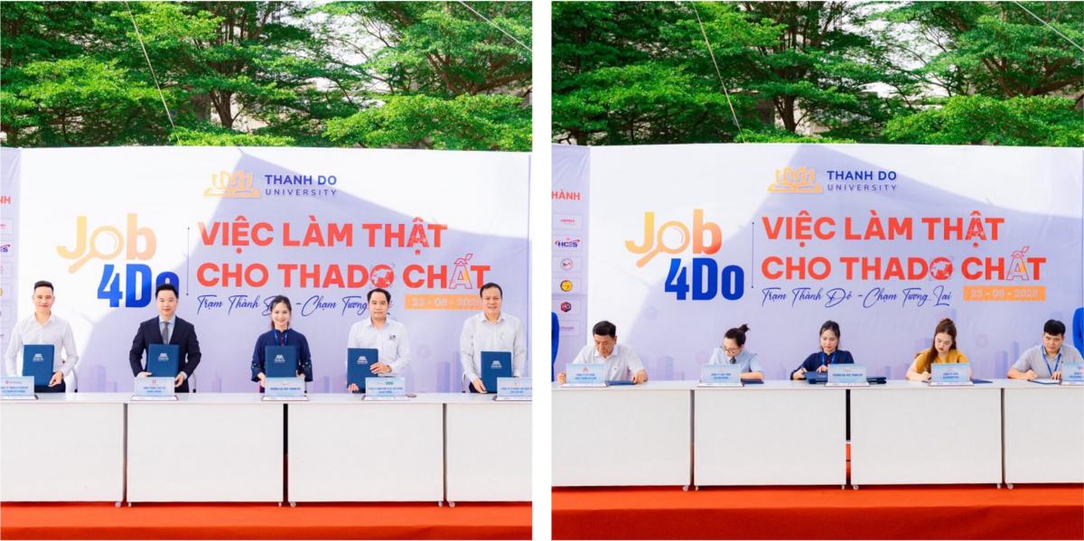Within the framework of Job4Do 2025, Thanh Do University signed cooperation agreements with several companies and organizations to further strengthen the bridge between the university and the business world, through practical programs that support student training and future employment.