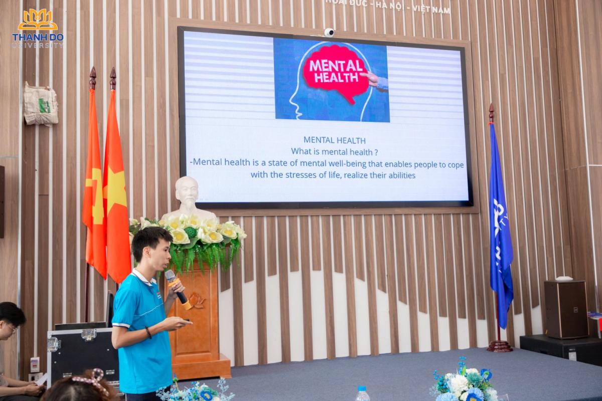 Chu Duc Thang (D01K12) from the IT Faculty brought humor and depth to the topic Mental Health