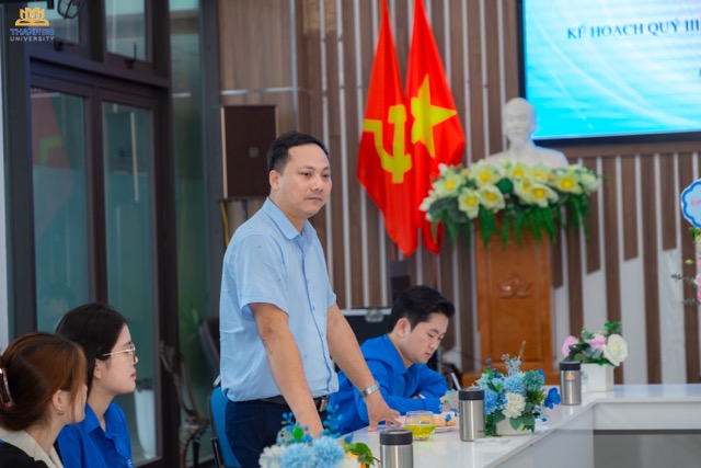 Đ/c Phạm Trọng Phước – Phó bí thư chi bộ Trường Đại học Thành Đô nhấn mạnh về định hướng phát triển công tác mới trong năm học cũng như vai trò của cán bộ Đoàn trong việc phát triển phong trào Đoàn – Hội.