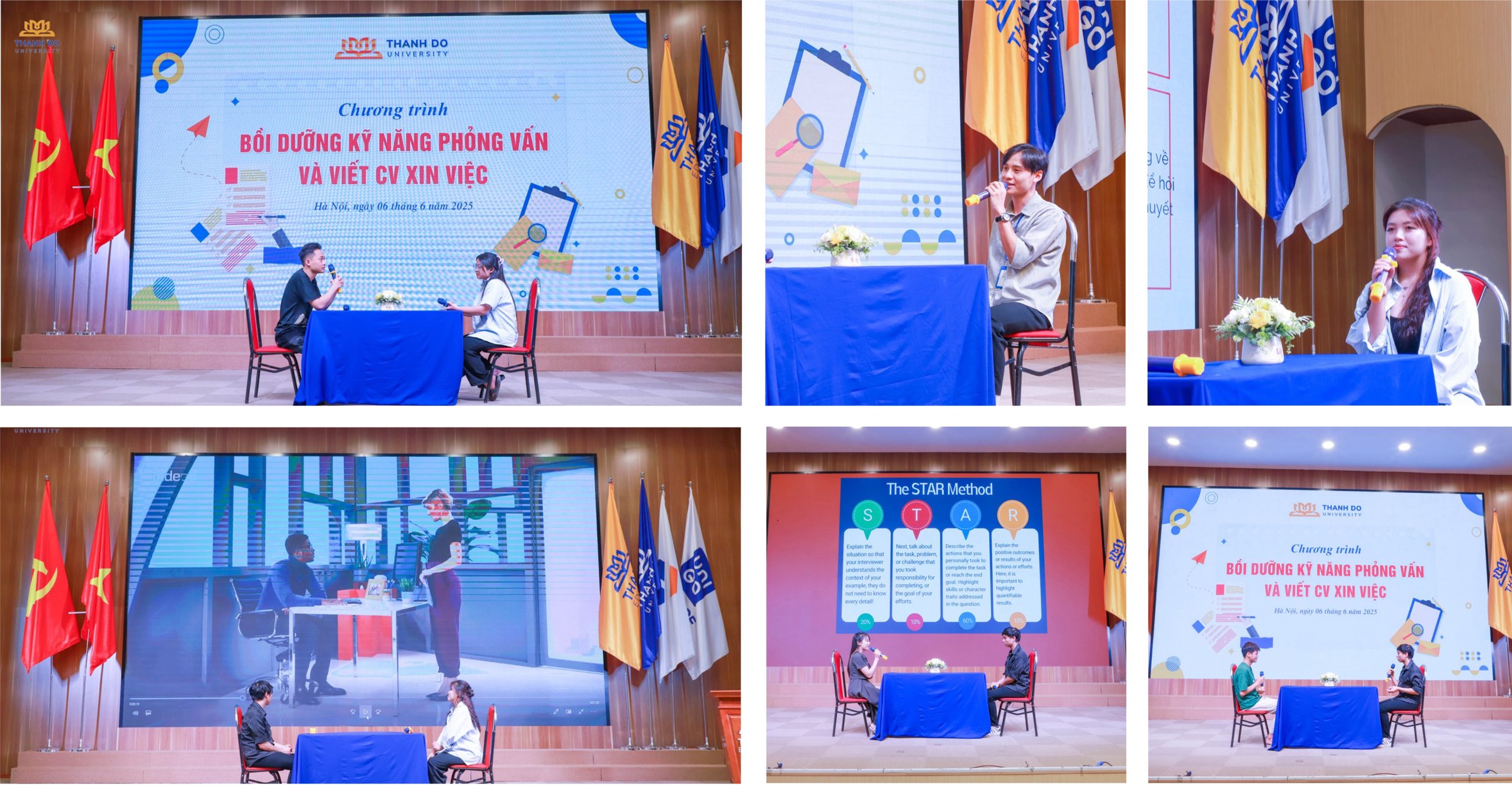 Sinh viên có khoảng thời gian thực hành kỹ năng trả lời phỏng vấn, xử lý tình huống và tạo ấn tượng tích cực với nhà tuyển dụng. Diễn giả đã cùng với các bạn sinh viên phân tích các trường hợp cụ thể, chỉ ra những điểm tốt và chưa tốt và đề xuất các cách thức phù hợp, từ câu hỏi khó trong phỏng vấn, cách ứng xử khi chưa có nhiều kinh nghiệm đến việc giữ phong thái tự tin, làm chủ cảm xúc trong phòng tuyển dụng.