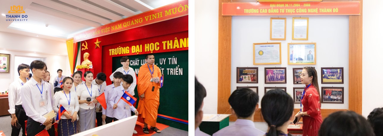 Sau Lễ khai giảng, các bạn sinh viên Lào đã có dịp thăm quan Phòng truyền thống của Trường Đại học Thành Đô – nơi lưu giữ những dấu mốc quan trọng trong hành trình xây dựng và phát triển của Nhà trường. Tiếp đó, các bạn còn được khám phá khuôn viên xanh – sạch – hiện đại của Hệ sinh thái giáo dục Thado Edupark, cảm nhận không gian học tập thân thiện, sáng tạo và gắn kết.