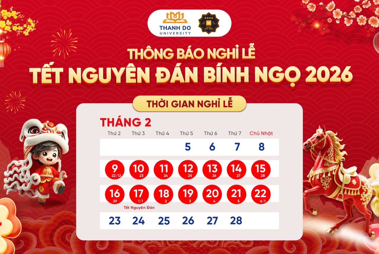 Trường Đại học Thành Đô thông báo kế hoạch nghỉ Tết Nguyên Đán Bính Ngọ năm 2026 tới cán bộ, giảng viên, nhân viên và sinh viên, học viên, nghiên cứu sinh như sau:
