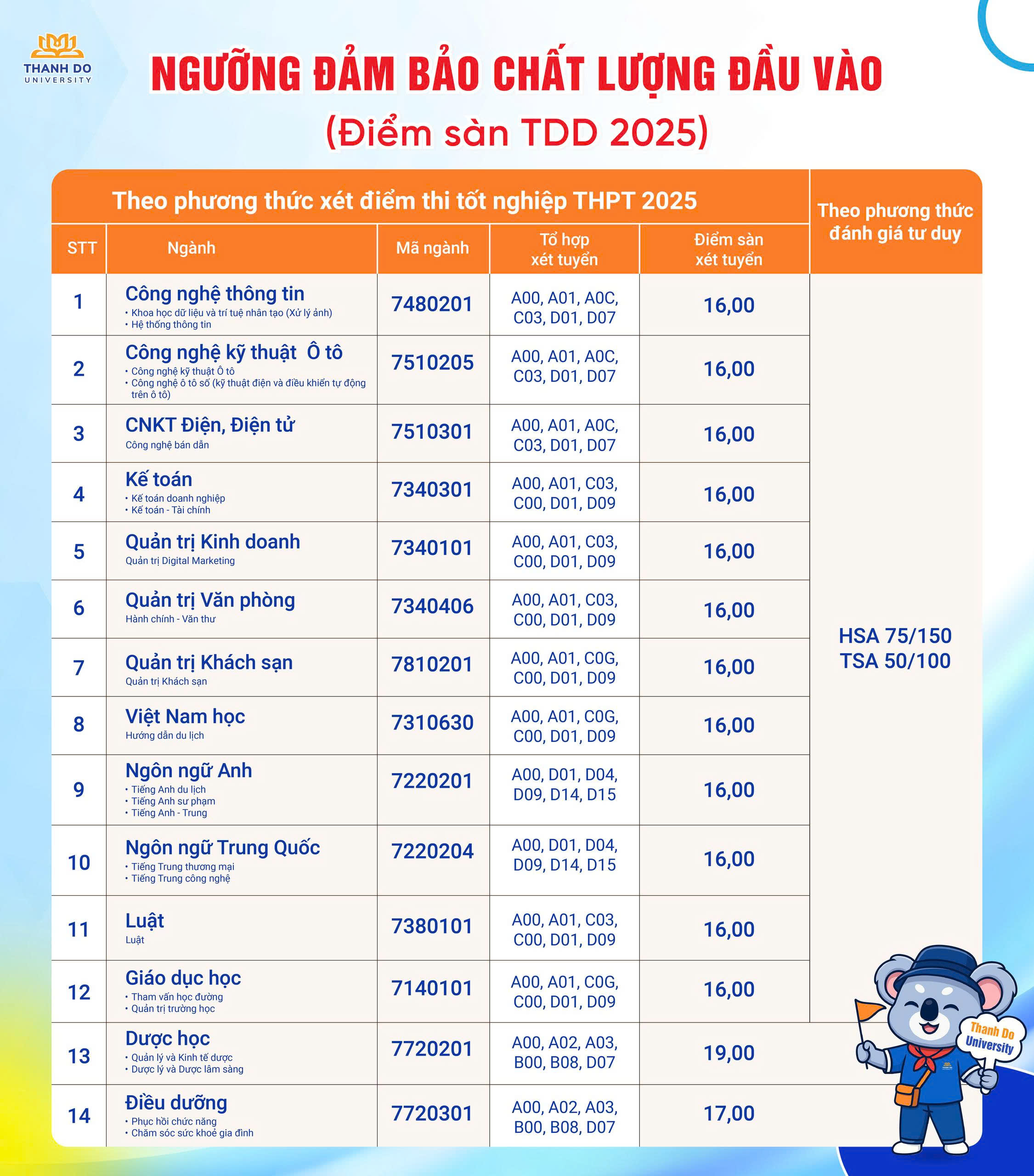 ⭐ Đặc biệt, Trường Đại học Thành Đô dành tặng những suất học bổng giá trị lên tới 50% học phí toàn khóa đến các “Tân Thadoer” tự tin, quyết đoán sớm đưa ra lựa chọn dựa trên xác định rõ mục tiêu, định hướng của bản thân và tìm hiểu, đánh giá kỹ lưỡng thông tin. Lựa chọn TDD là nguyện vọng 1, hoàn thiện đăng ký trên cổng thông tin của Bộ Giáo dục và Đào tạo và trở thành Thadoer chính hiệu!