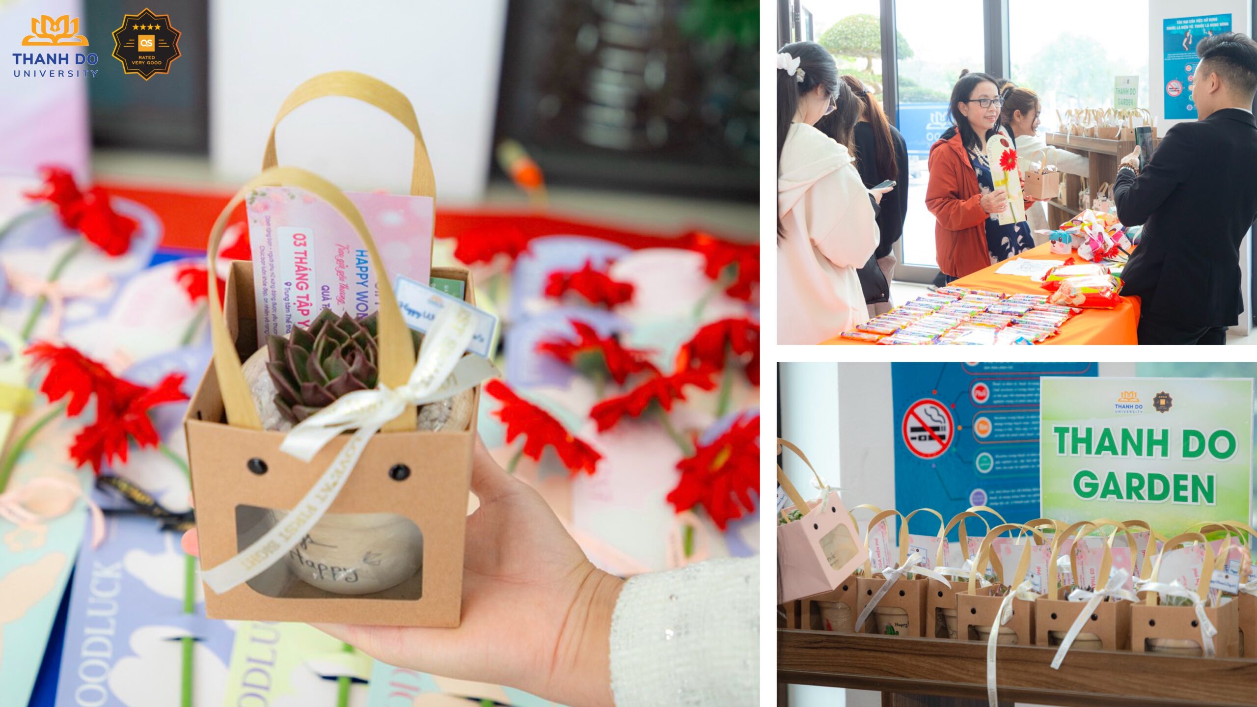 Gửi gắm sự quan tâm thiết thực, Nhà trường đã trao tặng các nữ cán bộ, giảng viên, nhân viên, sinh viên những món quà nhỏ xinh, từ chậu cây mini để bàn đến những chiếc kẹo ngọt ngào… Món quà nhỏ nhưng chứa đựng nhiều ý nghĩa, những mầm xanh tươi mát không chỉ làm đẹp thêm không gian làm việc mà còn gửi gắm lời chúc về sự an nhiên, hạnh phúc và nguồn năng lượng tích cực mỗi ngày.
