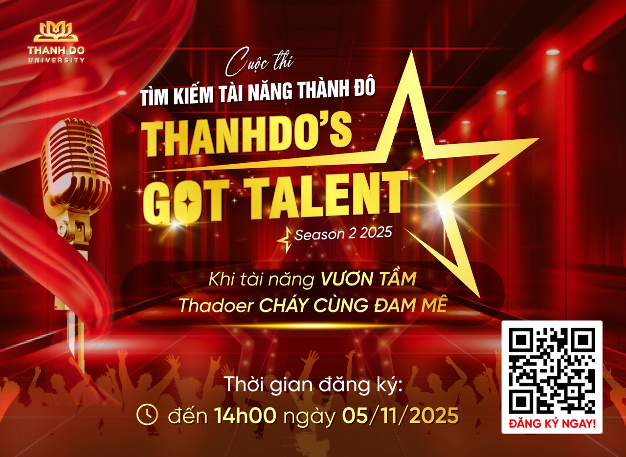 Sự trở lại của Cuộc thi tìm kiếm tài năng mùa 2 – THANH DO GOT’s TALENT 2025, “Khi tài năng vươn tầm – Thadoer cháy cùng đam mê”, chương trình là sân chơi bổ ích, nơi sinh viên bộc lộ tài năng nghệ thuật, khả năng sáng tạo, và sự hợp tác, gắn kết trong cộng đồng Thadoers.