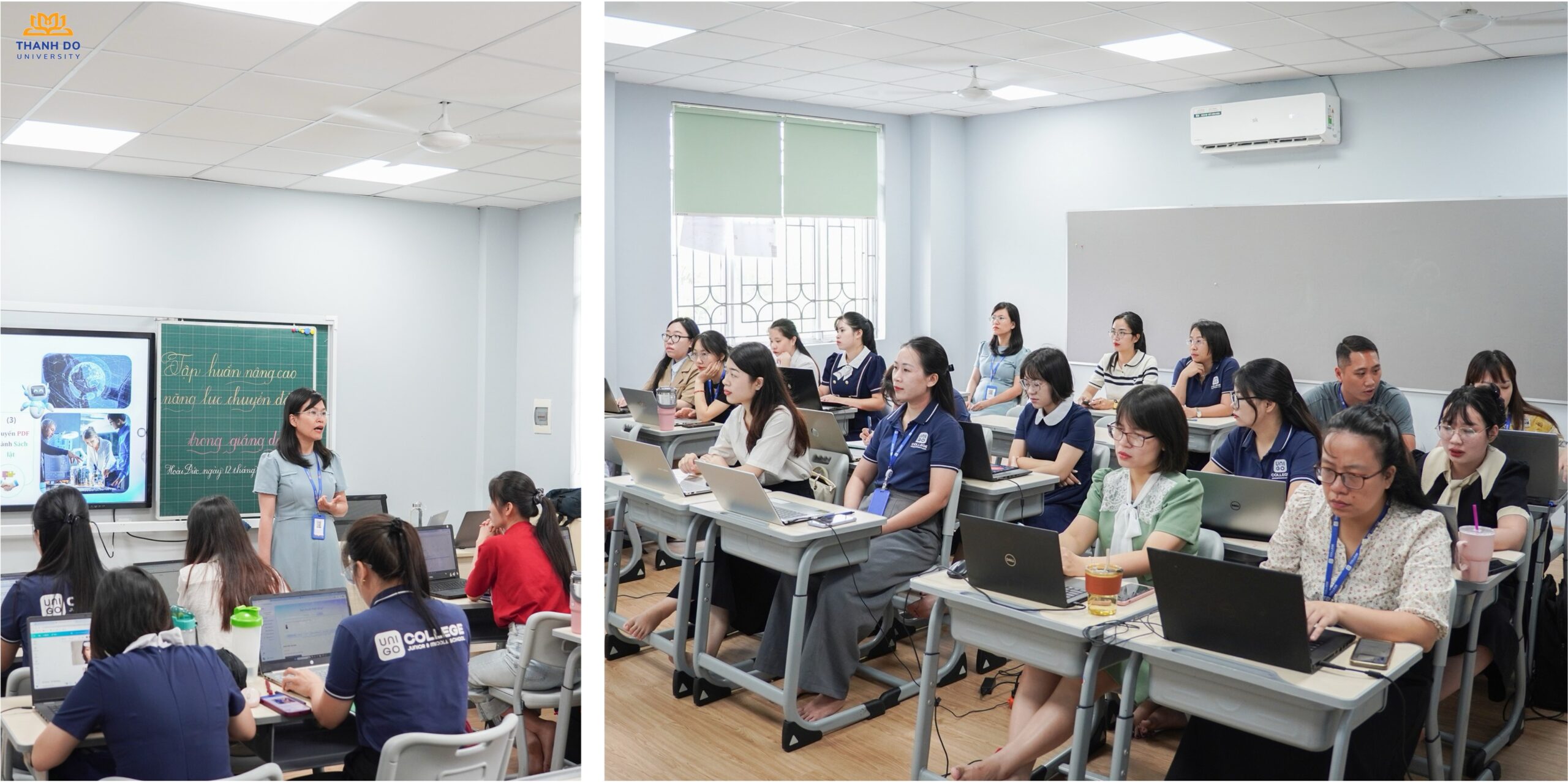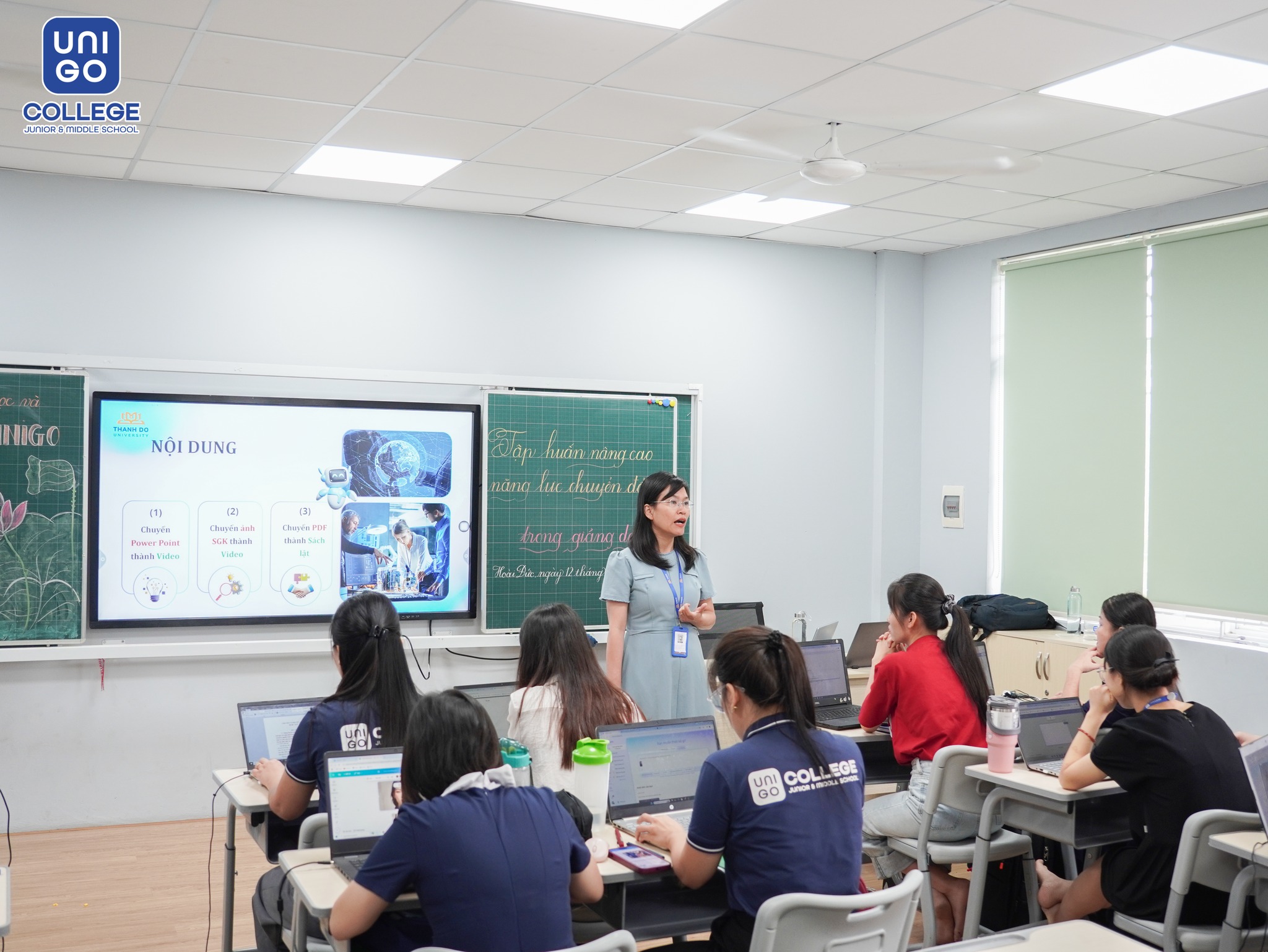 Không chỉ là hoạt động bồi dưỡng chuyên môn, chương trình còn mang đến tinh thần truyền cảm hứng trong dạy và học, khơi dậy tư duy đổi mới, thích ứng với sự phát triển mạnh mẽ của giáo dục số. Trường Đại học Thành Đô đã đồng hành, chia sẻ và hướng dẫn các thầy cô tại Trường Tiểu học và THCS Unigo về cách thức khai thác học liệu số, thiết kế bài giảng trực quan, sinh động và quản lý lớp học trực tuyến hiệu quả.