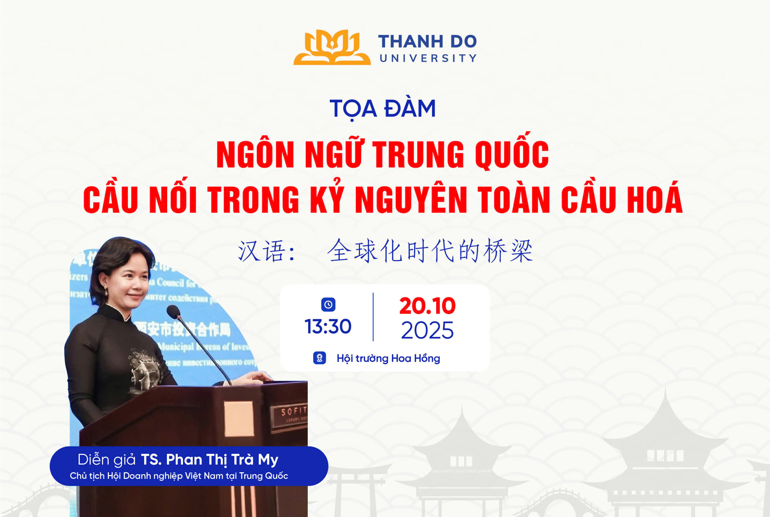 Tọa đàm có sự tham gia của Diễn giả TS. Phan Thị Trà My, Chủ tịch Hội Doanh nghiệp Việt Nam tại Trung Quốc, cũng là nhà nghiên cứu và doanh nhân giàu kinh nghiệm trong lĩnh vực hợp tác kinh tế, văn hoá Việt – Trung. Với những chia sẻ chân thực và gần gũi, diễn giả sẽ giúp Thadoer có thêm góc nhìn, nhận diện sâu hơn giá trị của ngôn ngữ như một cầu nối tri thức, văn hoá và cơ hội nghề nghiệp trong bối cảnh toàn cầu hoá hiện nay.