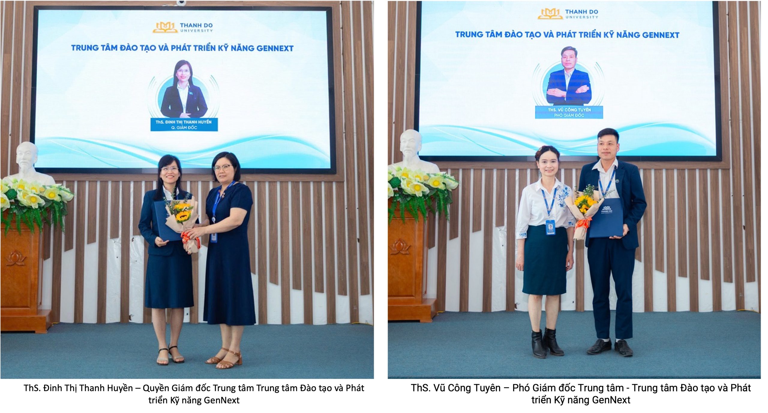 Trung tâm Đào tạo và Phát triển Kỹ năng GenNext: ThS. Đinh Thị Thanh Huyền – Quyền Giám đốc Trung tâm; ThS. Vũ Công Tuyên – Phó Giám đốc Trung tâm