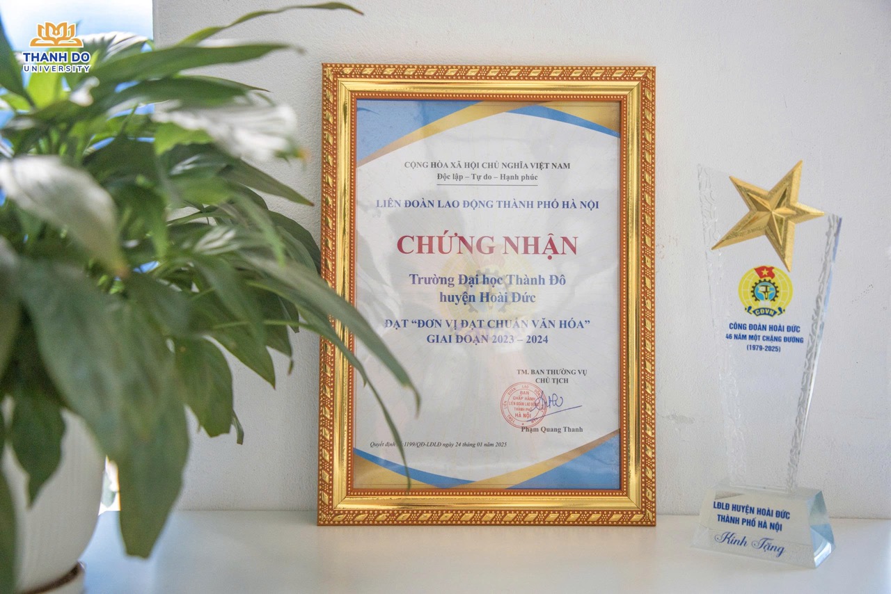 Đặc biệt, trong năm 2024, Công đoàn Trường Đại học Thành Đô cũng đã vinh dự được Liên đoàn Lao động huyện Hoài Đức trao tặng nhiều giấy khen như: