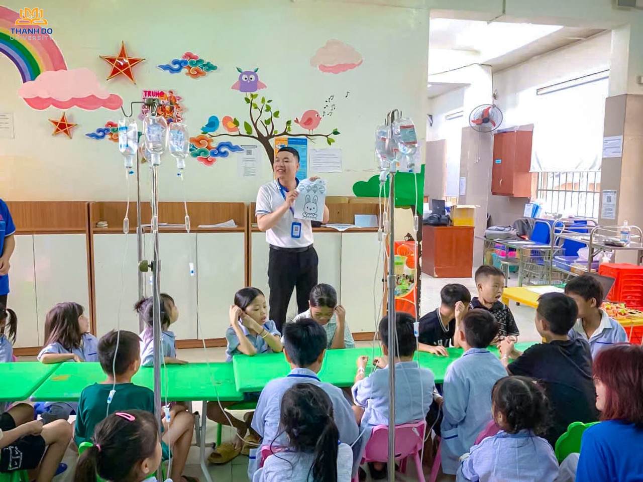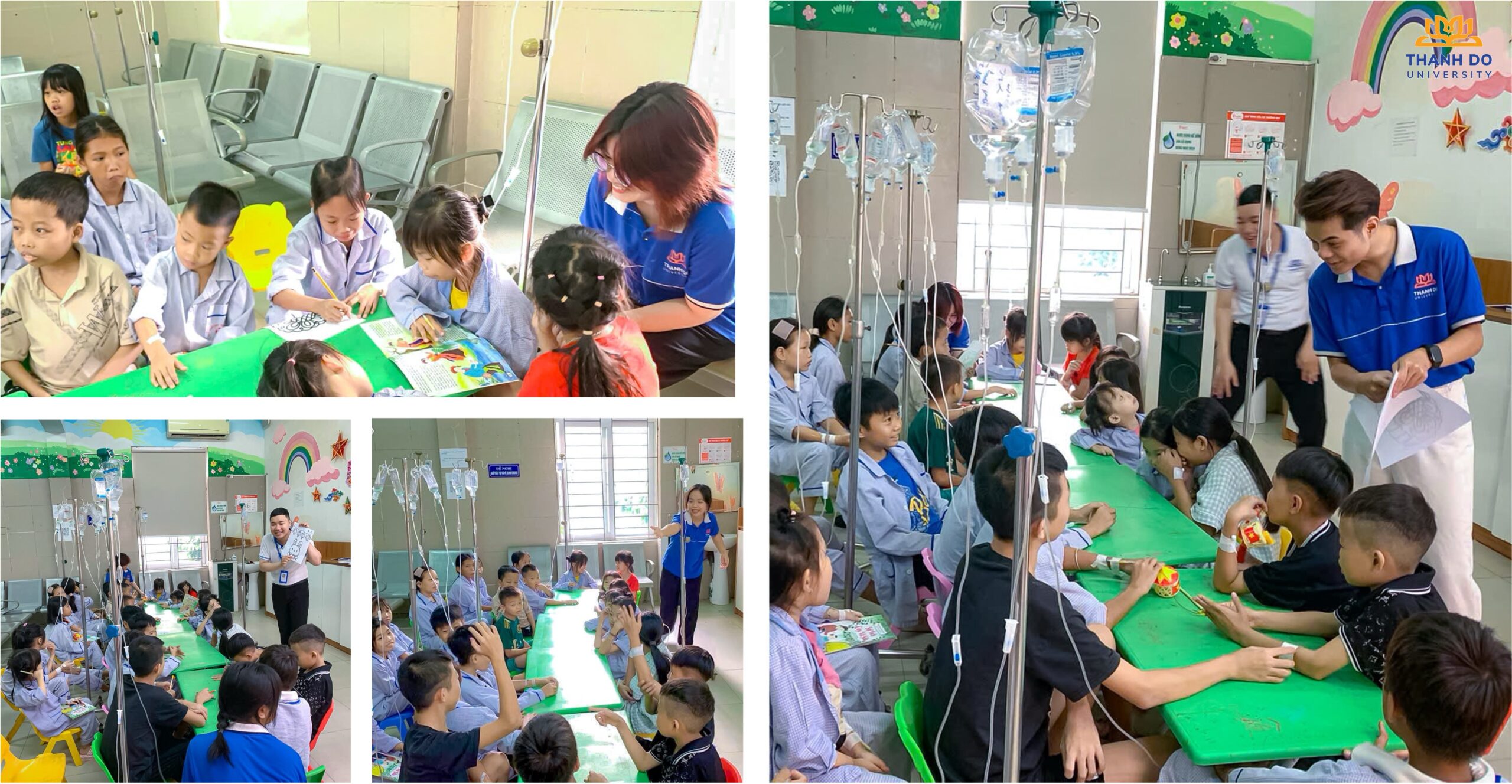 Ngay từ sớm, thầy cô và sinh viên Trường Đại học Thành Đô đã có mặt tại Khoa Thalassemia – Viện Huyết học Truyền máu Trung ương với sự chuẩn bị chu đáo cho chương trình “Vầng trăng ngôn ngữ – Mid-Autumn with Thado”. Những phần quà nhỏ cùng các hoạt động vui chơi, giao lưu đã mang đến cho các em bệnh nhi và gia đình những phút giây thư giãn, tạm quên đi nỗi đau và khó khăn trong hành trình điều trị.
